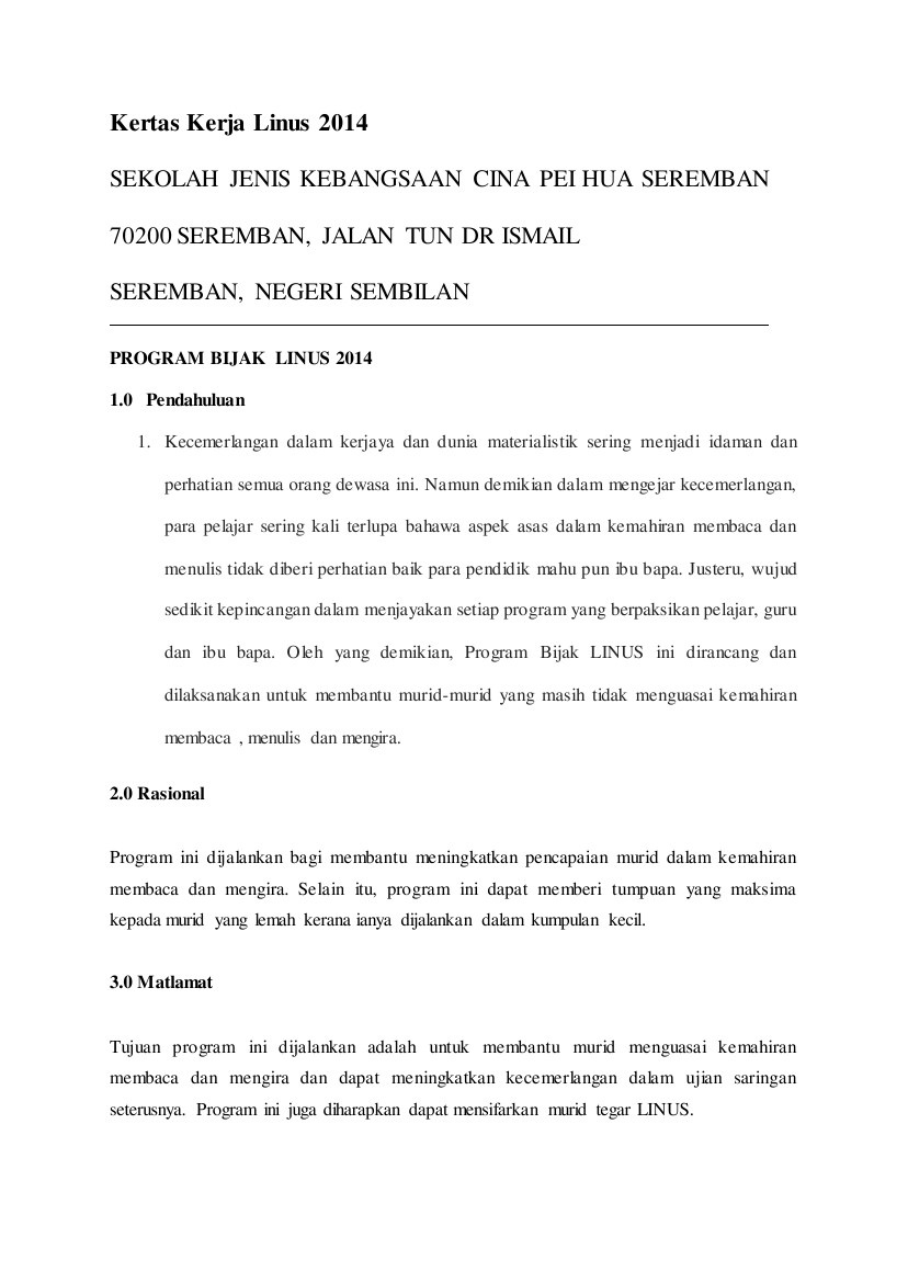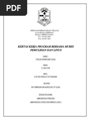Sedangkan untuk skedul pendukung diberi sub indeks dengan menambahkan. Program linus adalah singkatan dari literacy & numeracy screening di mana minister key performance indicators ( mkpi ) kpm kertas kerja ini disediakan sebagai makluman dan kelulusan pihak sekolah untuk mengadakan majlis perjumpaan ibu bapa/penjaga linus dan pemulihan khas. Contoh kertas kerja program sekolah. .kerja program linus 4.12mb dan streaming kumpulan lagu kertas kerja program linus 4.12mb mp3 terbaru di metrolagu dan nikmati, video klip kertas hasil diatas adalah hasil pencarian dari anda kertas kerja program linus mp3 dan menurut kami yang paling cocok adalah kertas kerja. 7.4an effective plain english speech :