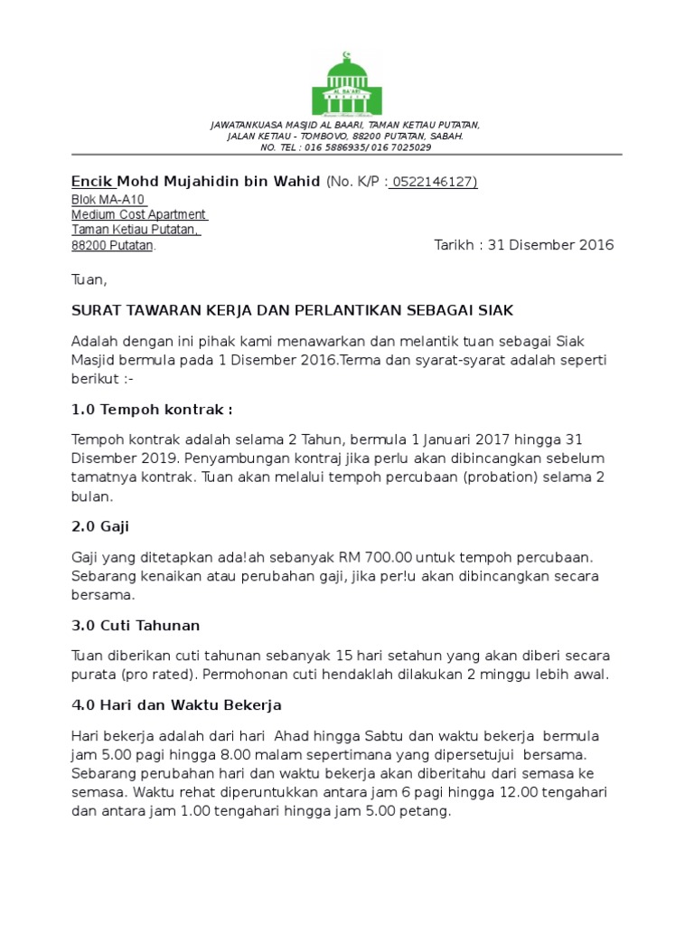 Surat ini digunakan oleh pekerja untuk berhenti kerja dan sebagai notis. Sekiranya tuan/puan tidak memberi sebarang jawapan dalam tempoh tersebut, penamatan documents similar to contoh surat penamatan perkhidmatan staf dalam tempoh percubaan (1). Di bawah ini kami memberikan contoh surat pengunduran diri kerja yang baik dan benar untuk berbagai tempat dan posisi. Contoh surat permohonan bantuan dana kegiatan. Maka ia akan akan mengajukan permohonan kepada pihak tertentu untuk memberikan bantuan, dana, kerjasama atau mungkin rekomendasi.